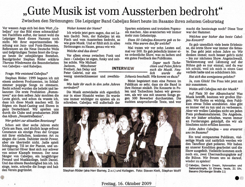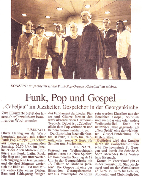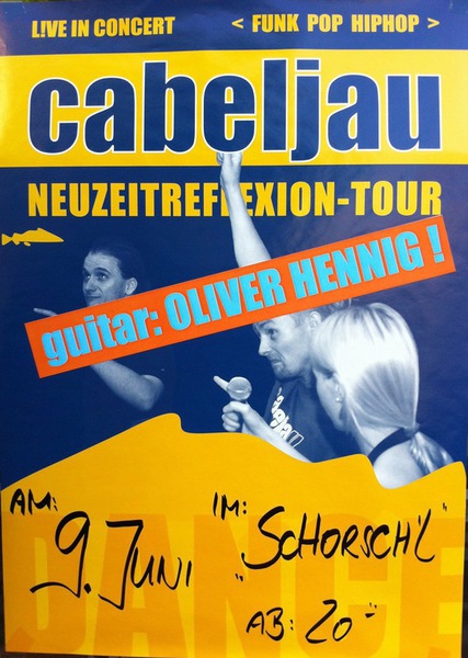 Mit der Band "cabeljau" - eine absolut angesagte FUNKY - JAZZ - POP - GRUPPE aus Leipzig, qualifizierte sich OLIVER HENNIG mehrfach im EMERGENZA-Ausscheid für die beste Band Sachsens. "cabeljau" spielte mit Blueslegende PAUL MILLNS, war Headliner bei den CAMPUSTAGEN, Produzierten 2008 das Album "NEUZEITREFLEXION", tourte schon europaweit und machte mehrfach Schlagzeilen u.a. mit "GUTE MUSIK IST VOM AUSSTERBEN BEDROHT".