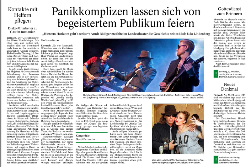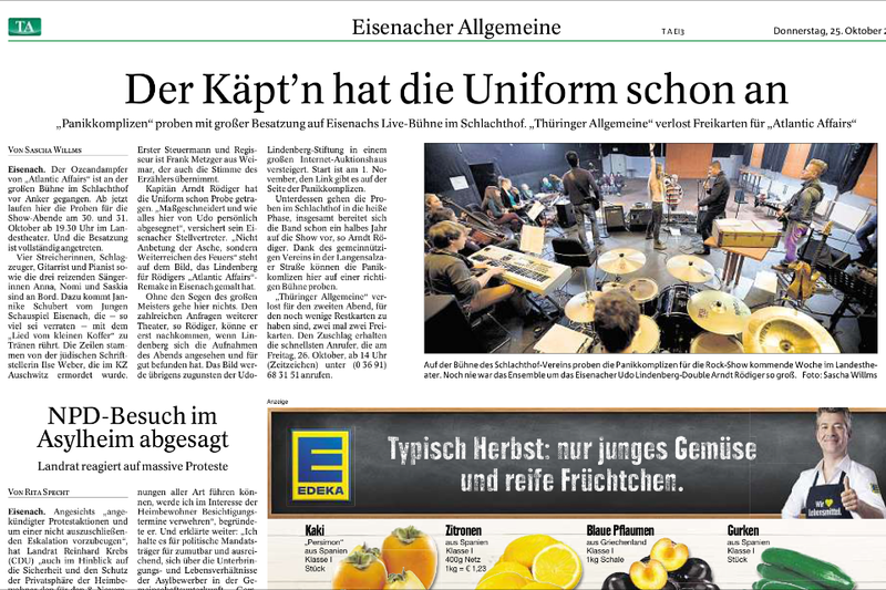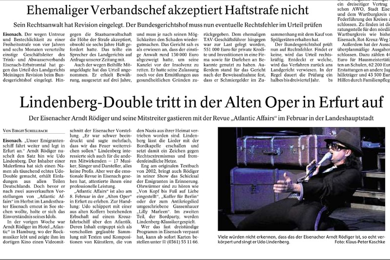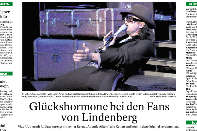 2014 sprengte er alle Ketten mit dem PANIKKOMPLIZEN das Landestheater Eisenach und die "Alte Oper" in Erfurt. Mit der Inszenierung der Rock-REVUE von UDO LINDENBERG "ATLANTIC AFFAIRS" – alle Vorstellungen waren sofort ausverkauft!