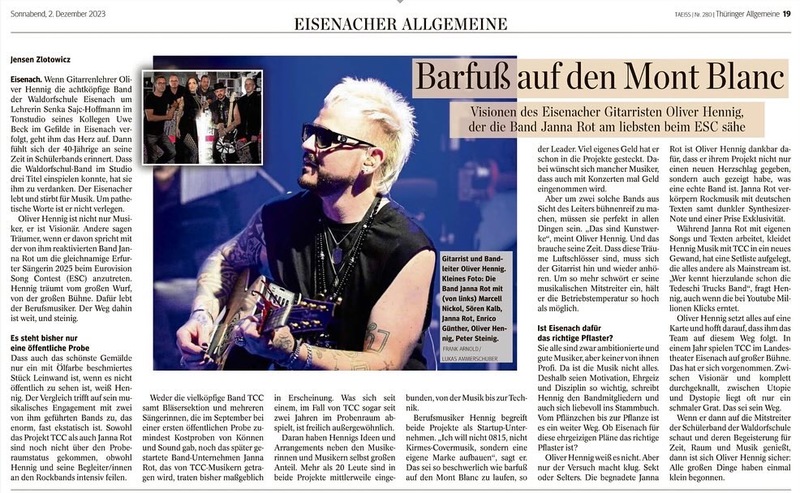 Neben der Arbeit an seinem musikalischen Lebenswerk, reproduziert OLIVER HENNIG im Jahr 2023 zusammen mit seinen Musikern einen Song der Erfurter Sängerin JennaRot. Die Sängerin suchte schon lange nach neuen Musikern aus der Szene. Der Sound bekam eine neue Rüstung. Kraftvoller Gitarrensound in einem Darksynth Mantel. Sie überzeugten die Erfurter Sängerin sofort und begannen am selbigen Tag noch die Planung für das Comeback der Band JennaRot.