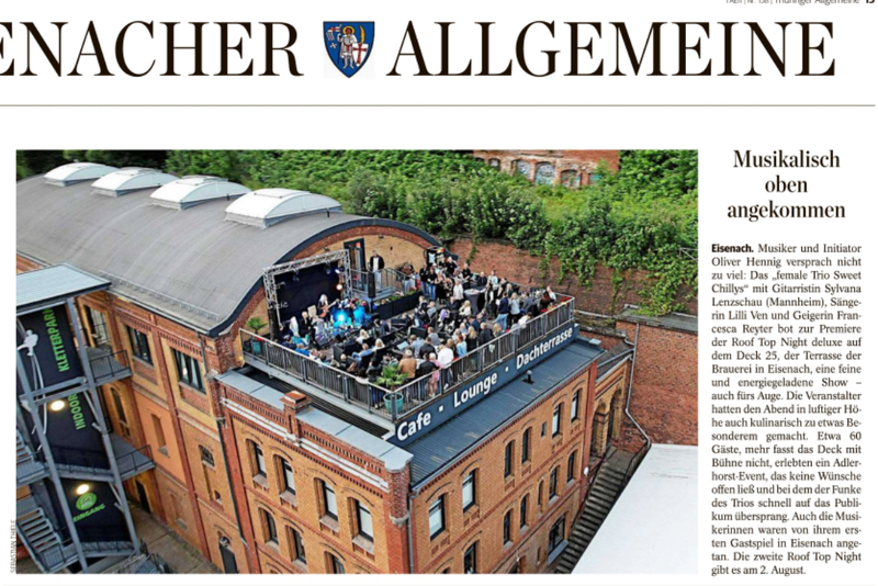 Im Juni 2024 gründete OLIVER HENNIG die Event-Marke ROOF TOP NIGHTS luxury. Ein neuer Veranstaltungsort mit Premiumcharakter. Hochkarätige Musiker, Top Acts samt exklusivem Catering holt OLIVER HENNIG mit Aftershow inklusive. Es begann ein enge Zusammenarbeit mit dem HOTEL HAUS HAINSTEIN Eisenach, wo sich die Event-Marke ROOF TOP NIGHTS luxury als Veranstaltungsort fest etablierte.
